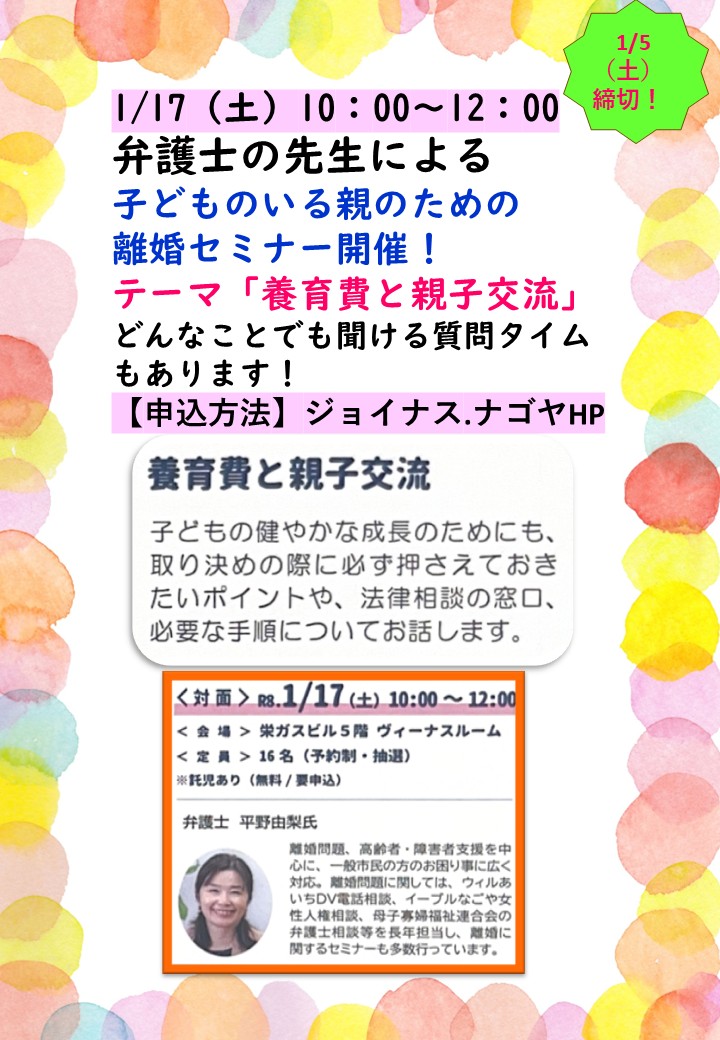2026年 1月に対面での離婚セミナーを開催します!(参加無料)